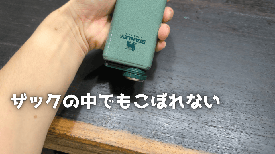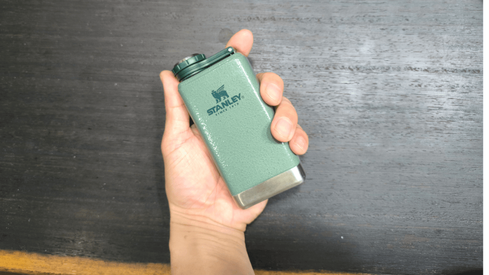 アウトドアギアの中でも水筒などで有名なスタンレーですが、スキットルも表面加工で滑りにくく、蓋が一体型で片手で扱いやすいなど細やかなところにも配慮してありました。