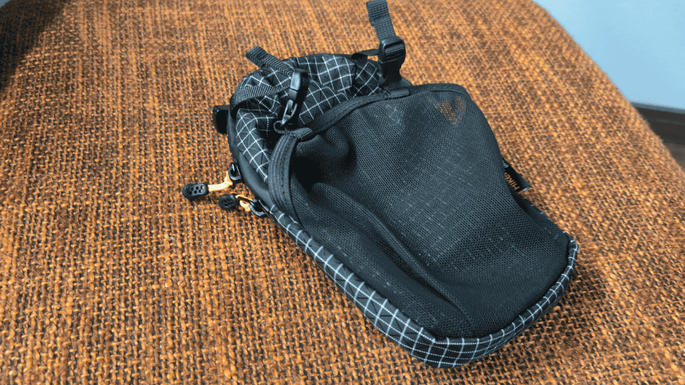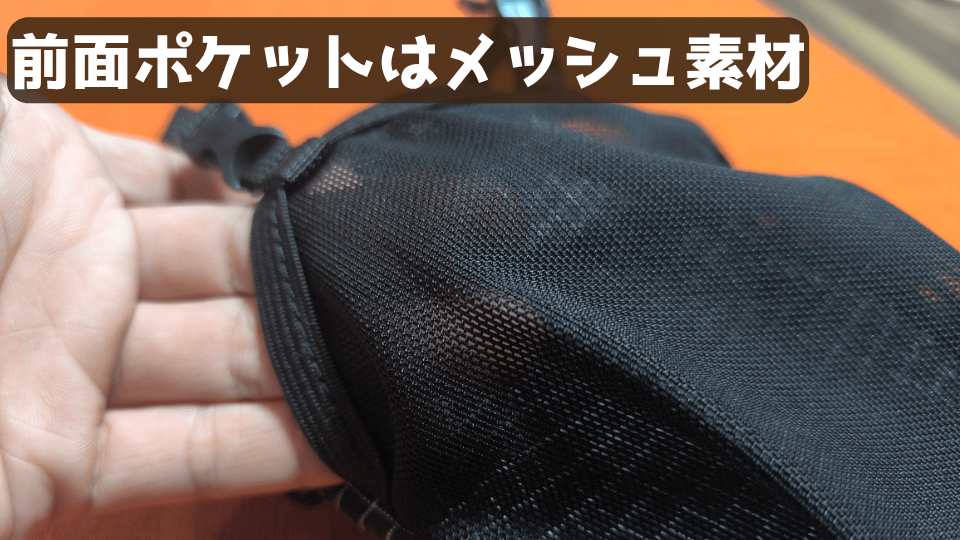前面のポケットはメッシュ素材でバックルで締め具合も調整できる