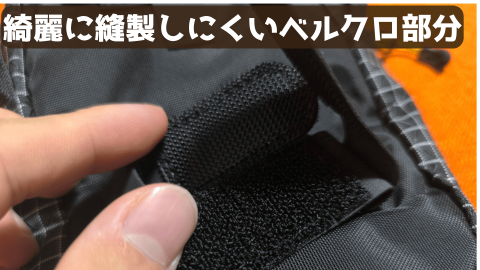 ベルクロのオスはミシン糸が引っかかるため、綺麗に縫製するのが難しい部位ですが