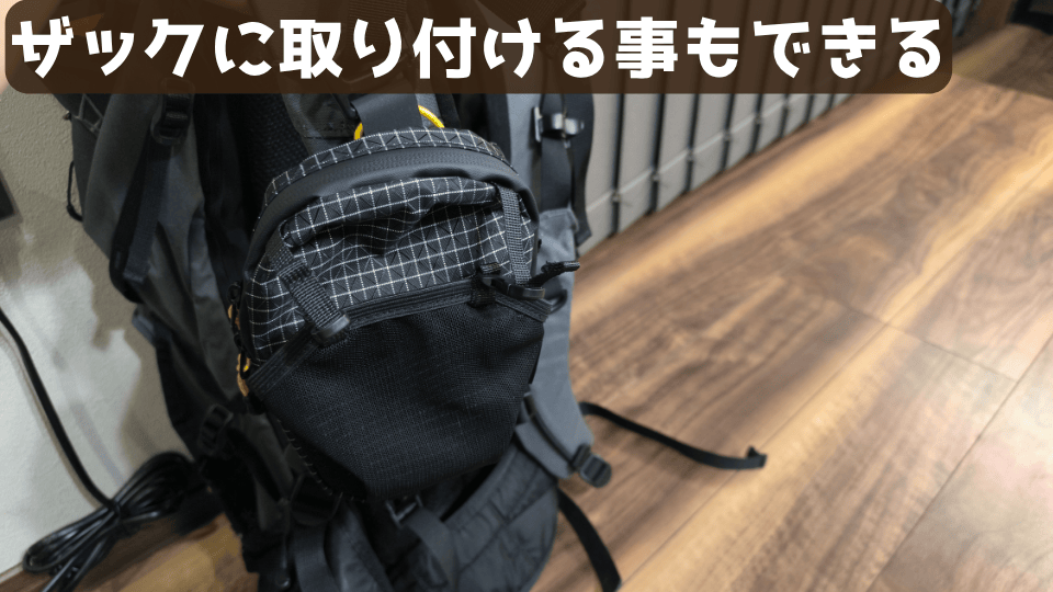 これがメインの使い方ですが、もちろん登山用のザックに取り付ける事もできます