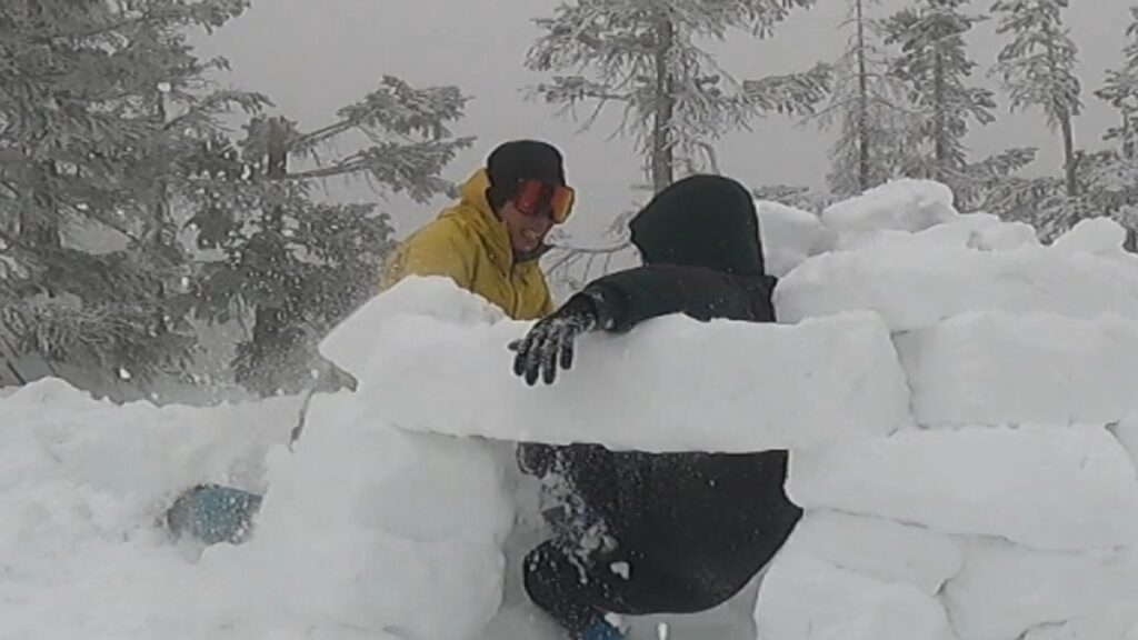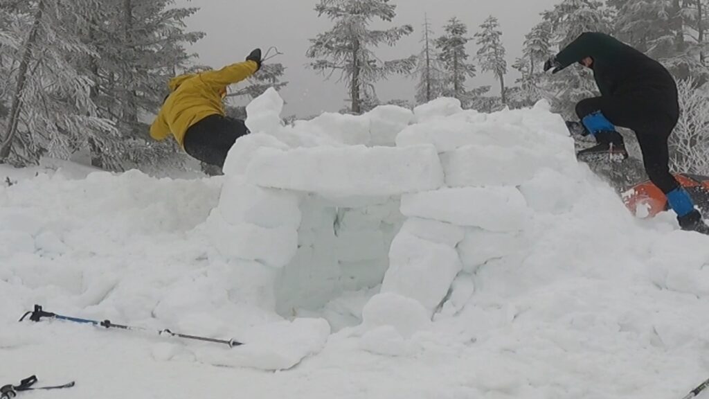 2人でスノーブロックをひたすら作る