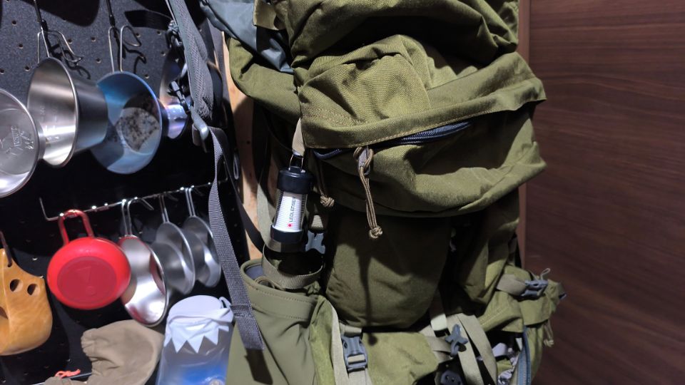 ザックに引っかけておけば、直ぐに点灯できて内容量を圧迫しない