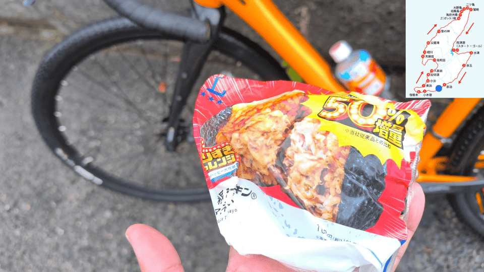 買っておいたローソンの50%増量のおにぎりを朝食としていただく