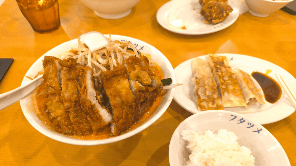 チャーシューではなく、揚げ豚が乗っていて背徳感溢れるラーメンだ