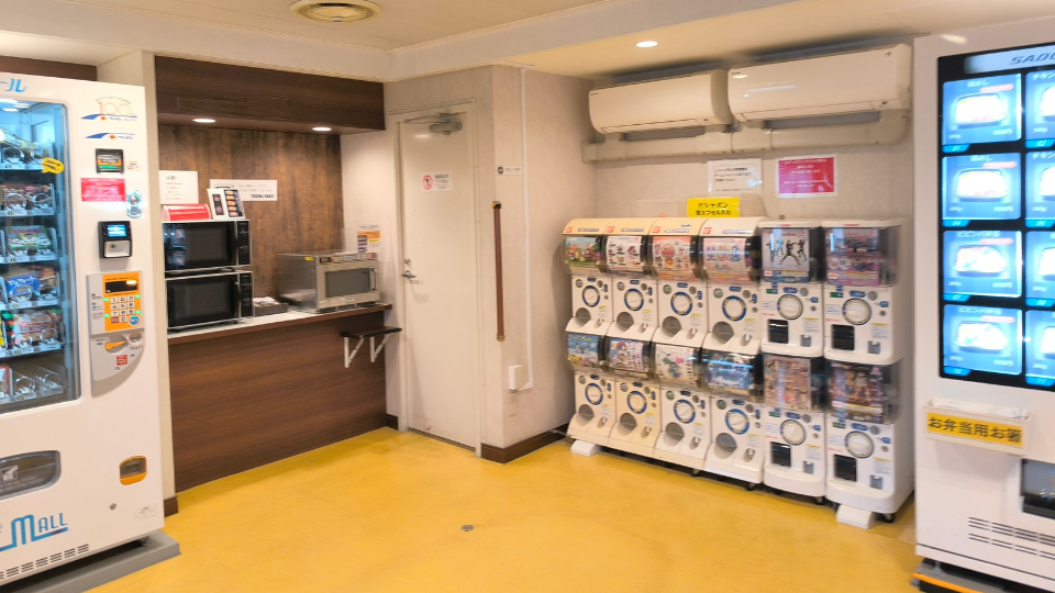 飲食スペース、ガチャポン、ゲームセンターが併設