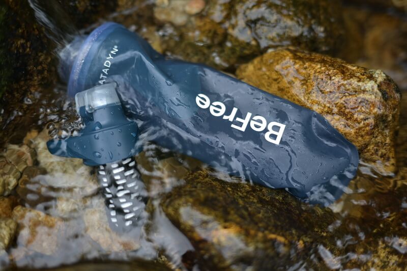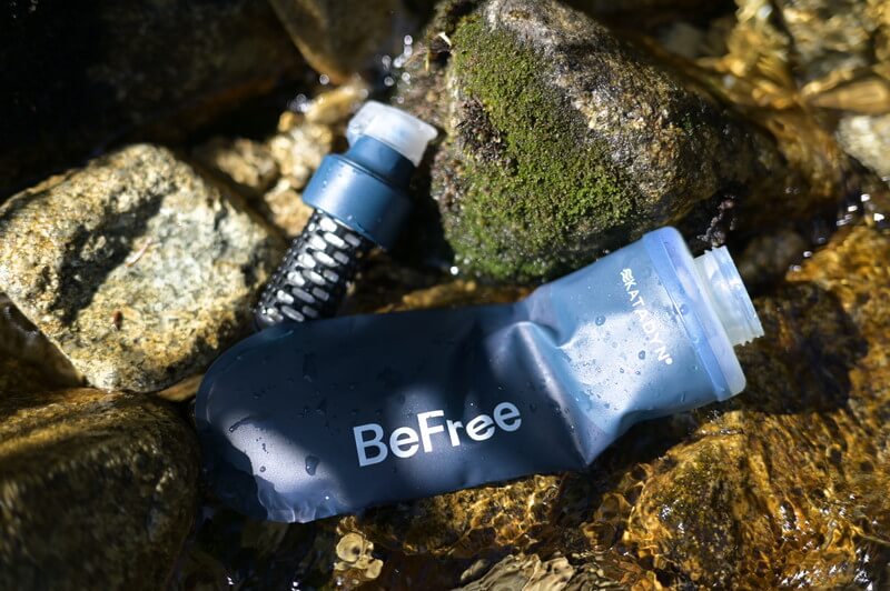 前回のビーフリーから進化、重量は10gほど増量したが使い勝手は向上!大きな変更点として、活性炭フィルターを搭載してダブルフィルター化、浄水部分にカラビナをひっかける事ができ、飲み口のキャップ部分使いやすくなってます。