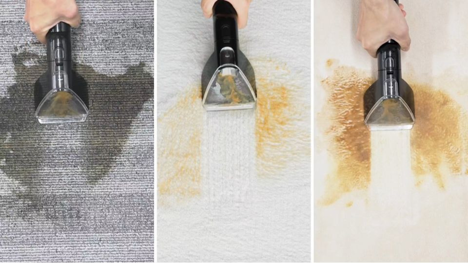ソファやカーペットでスチームクリーナーを併用して使用する事で、油脂汚れ(食べかす、皮脂)を浮かせて吸い取るだけでなく、高温蒸気による除菌、水溶性の汚れ(ジュース、嘔吐、牛乳)なども綺麗にしてくれます。