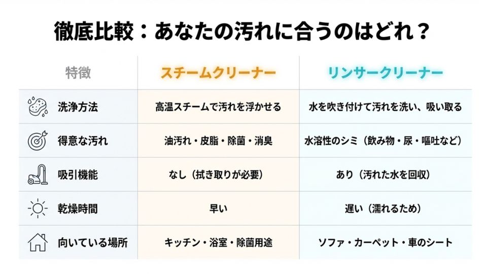 ・リンサークリーナーとスチームクリーナーの違いわ?